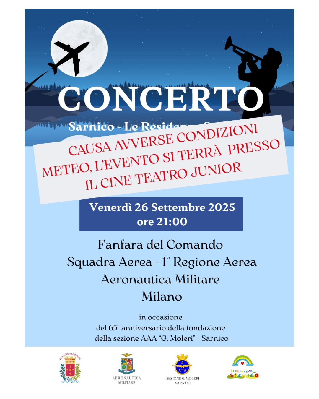 Venerdì 26 settembre alle ore 21 si tiene il Concerto della Fanfara del Comando Squadra Aerea - 1ª Regione Aerea dell’Aeronautica Militare Milano, un appuntamento di prestigio che unisce musica, storia e valori istituzionali, portando sul Sebino l'emozione delle Fanfare militari italiane.
