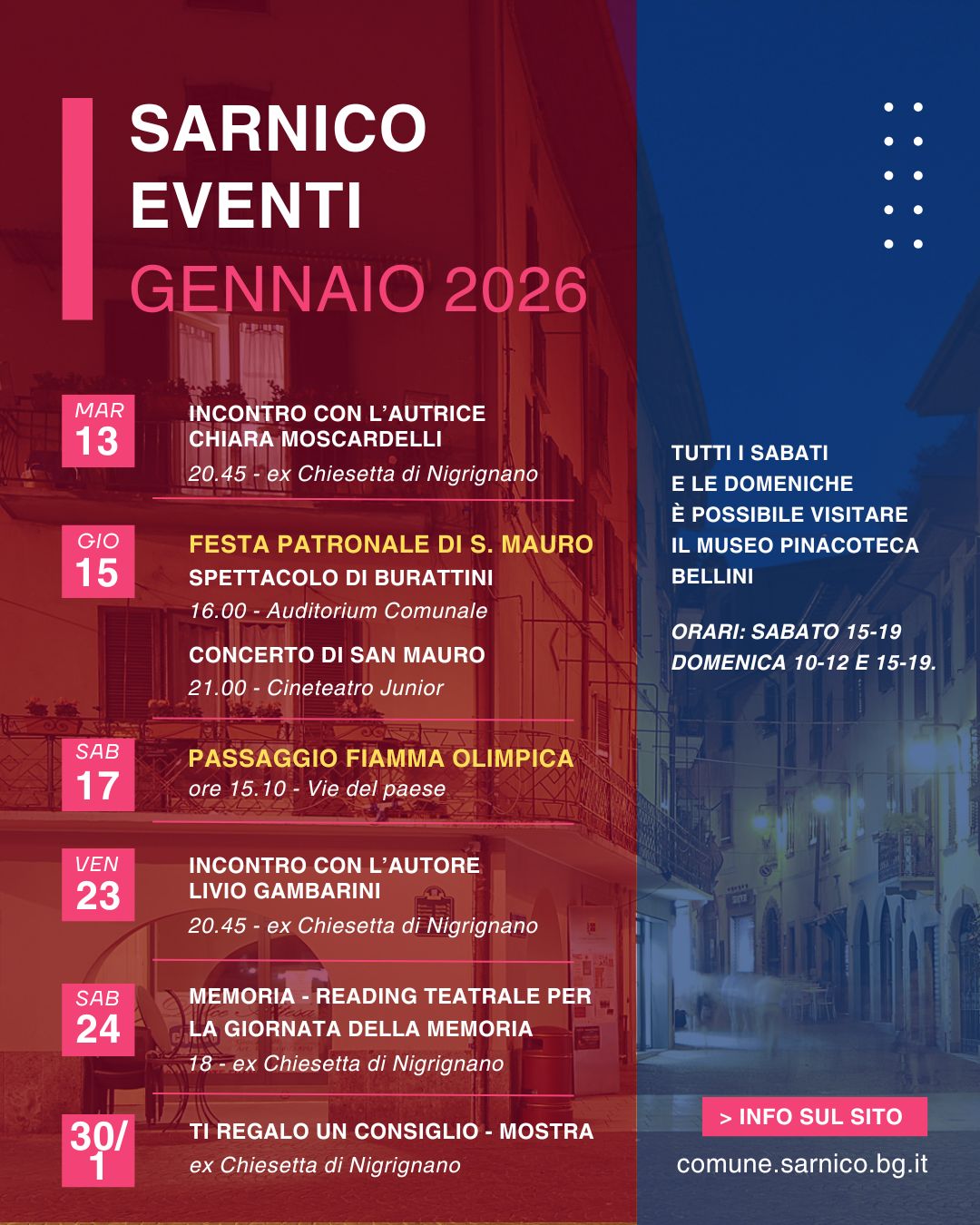 Archiviate le festività, non si fermano le iniziative per residenti e visitatori a Sarnico. Il 2026 si apre con un calendario di appuntamenti culturali, musicali e