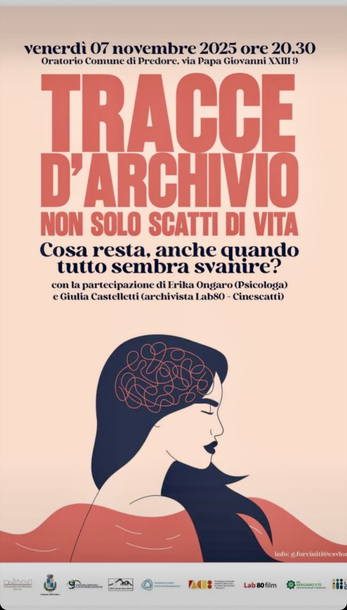 «Tracce d’archivio» è organizzato da Laboratorio Caregiver, in collaborazione con la Comunità Montana dei Laghi Bergamaschi, il Comune di Predore, Lab 80 film e Cinescatti.