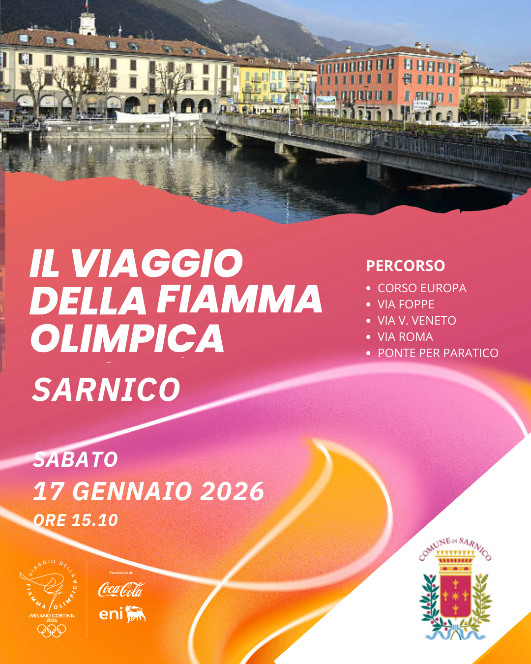 Sabato 17 gennaio la Fiamma olimpica di Milano-Cortina 2026, accompagnata dalla Carovana ufficiale, attraversa Sarnico nella 41esima tappa del suo viaggio verso i Giochi Olimpici Invernali, portando con sé i valori universali dello sport, della pace e dell’incontro tra i popoli.