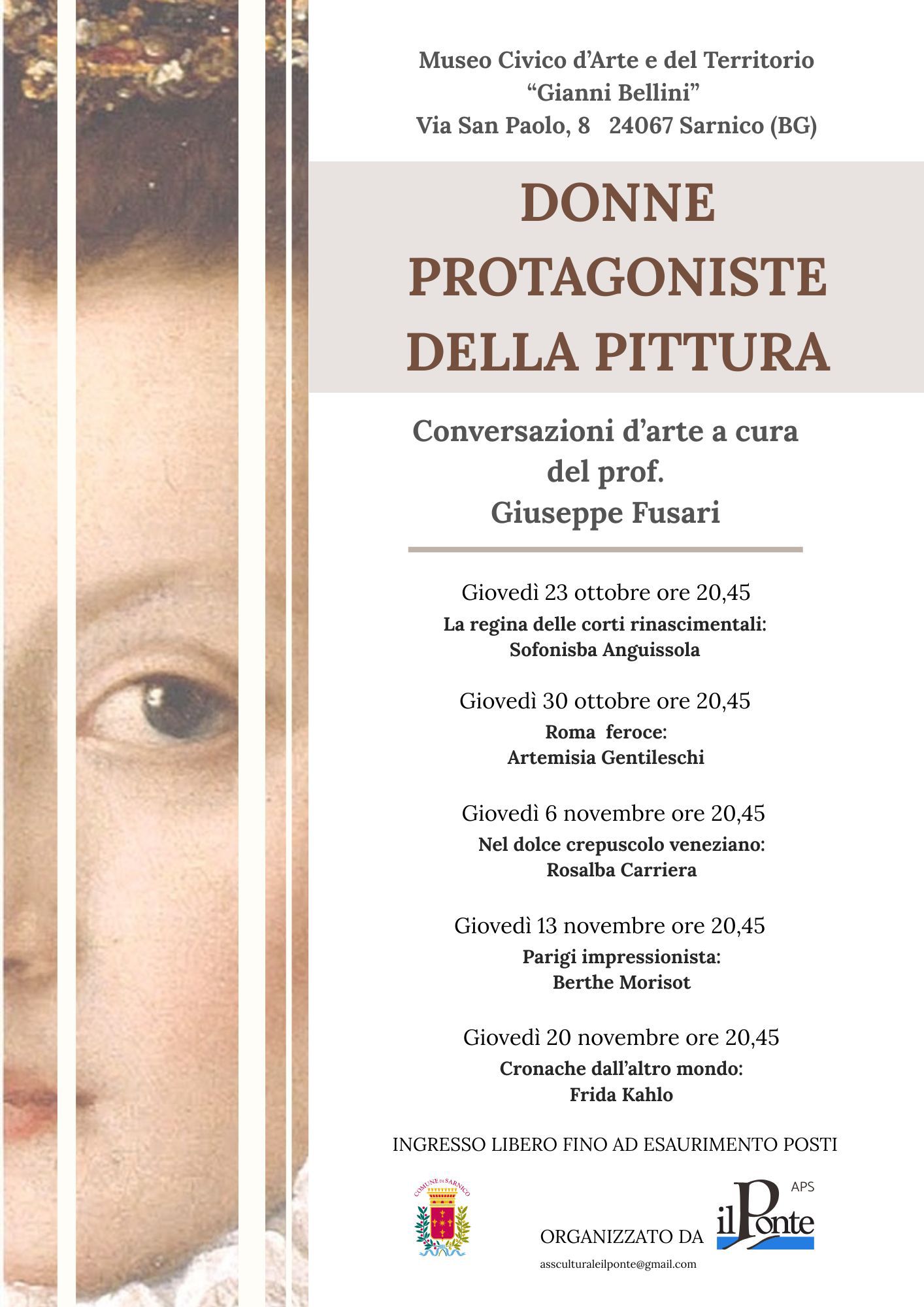 Dopo il successo della rassegna Autunno Musicale in Pinacoteca, l’Associazione di promozione sociale Il Ponte, con il patrocinio del Comune di Sarnico, propone anche quest’anno un nuovo appuntamento dedicato all’approfondimento artistico: Conversazioni d’arte, ciclo di cinque incontri a cura del professor Giuseppe Fusari.